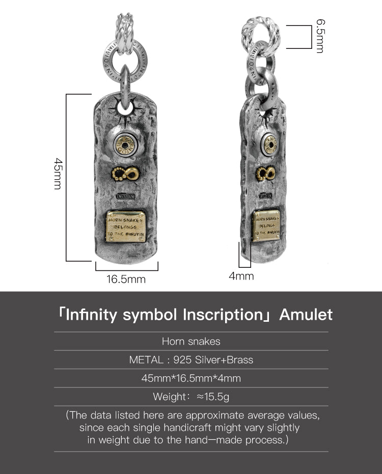 Infinity symbol Inscription Amulet in 925 Silver