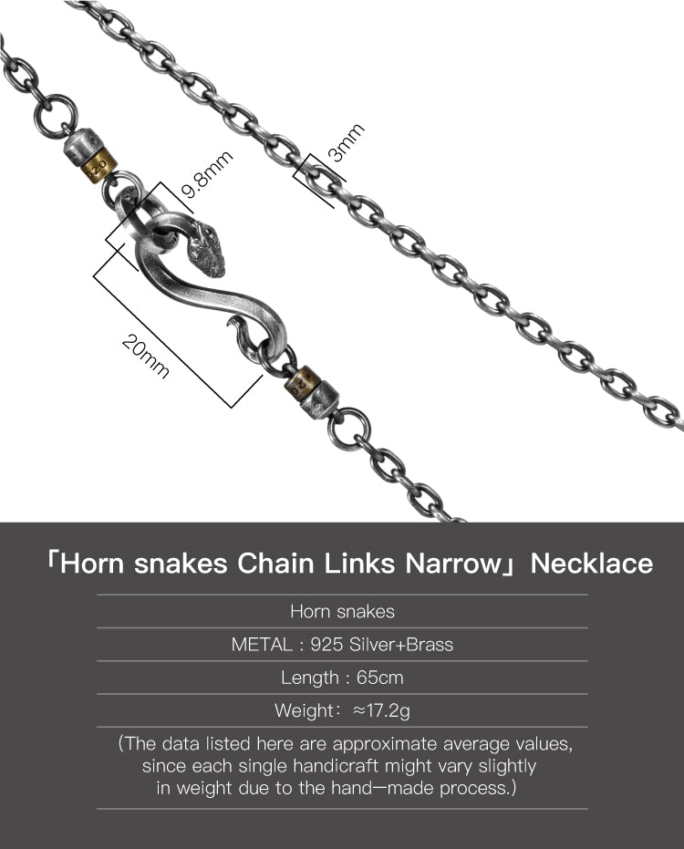 Horn snakes Chain Links Narrow Necklace in 925 Silver