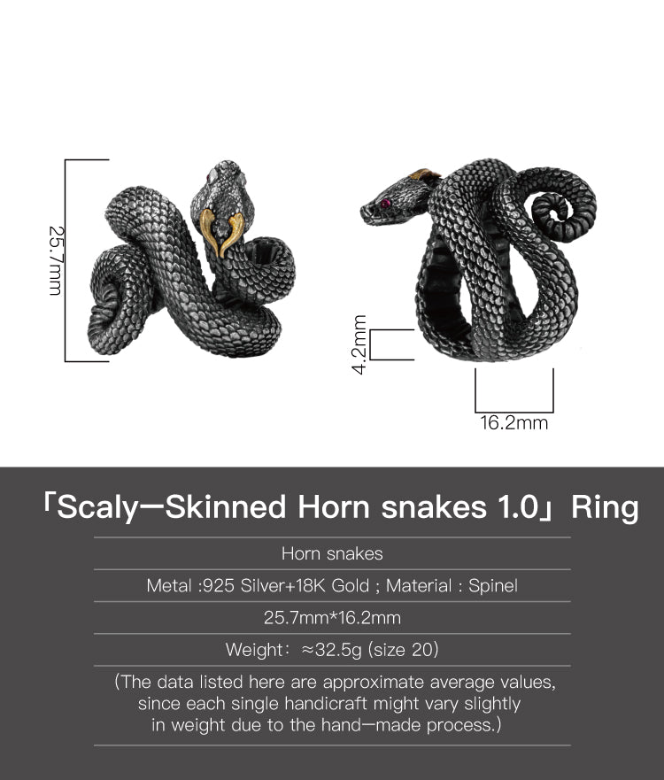 Scaly–Skinned Horn snakes Ring in 925 Silver+18K Gold