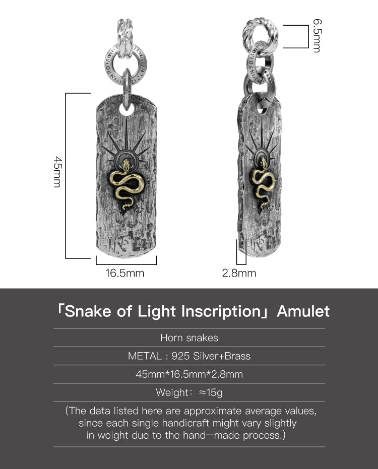 Snake of Light Inscription Amulet in 925 Silver