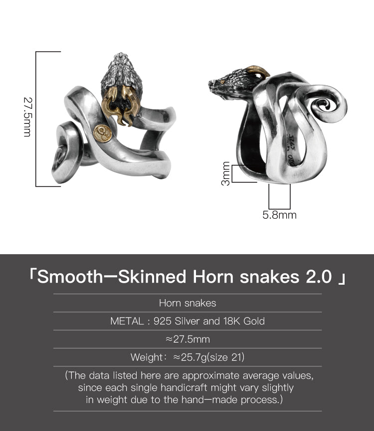 Smooth–Skinned Horn snakes 2.0 Ring in 925 Silver+18K Gold